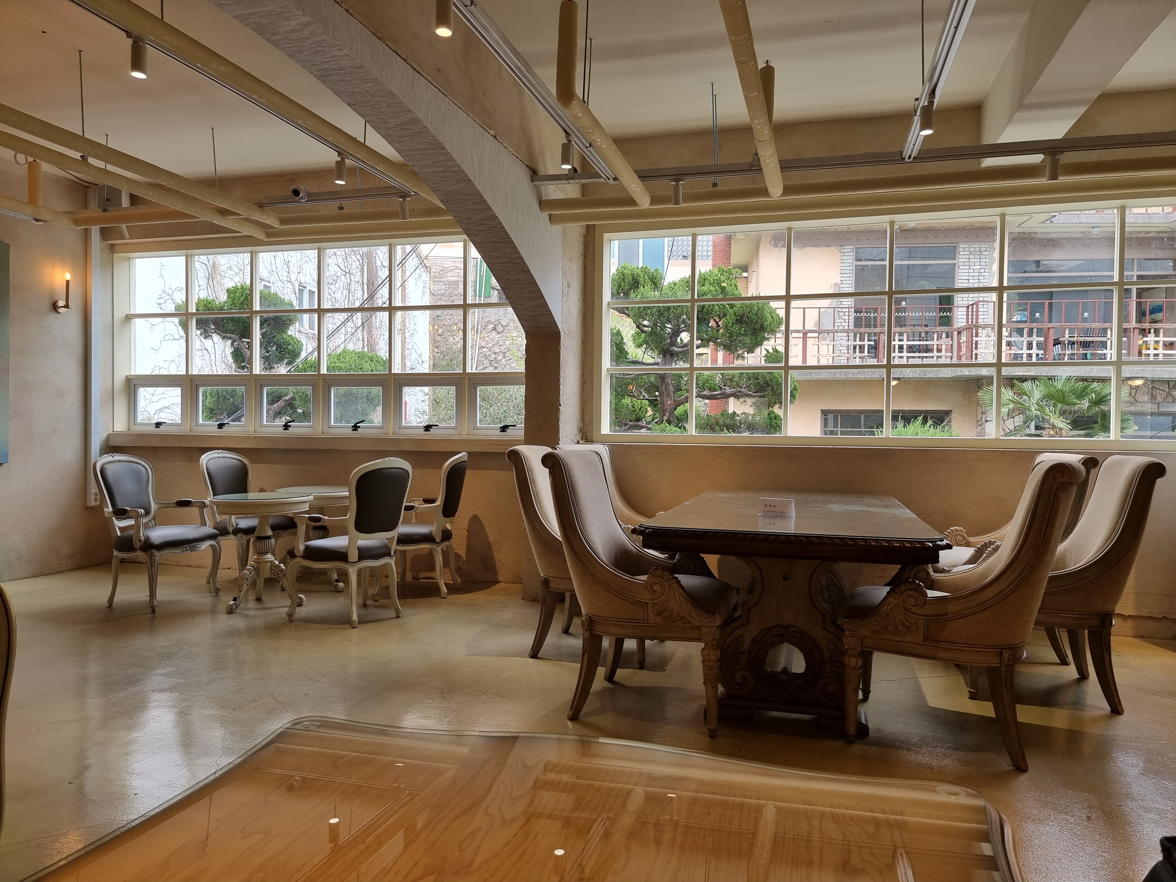 서점은 아직 수리 중이었지만 카페는 열려 있었고 안으로 들어갔습니다.