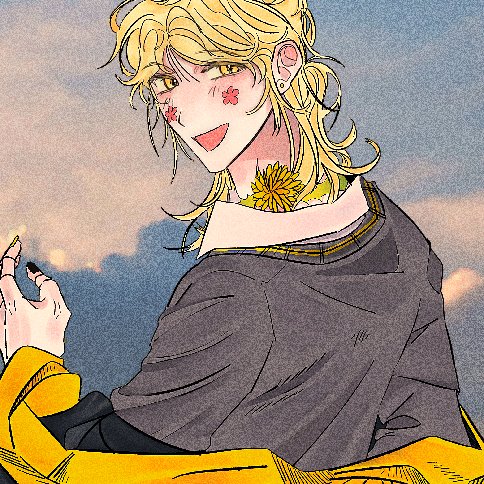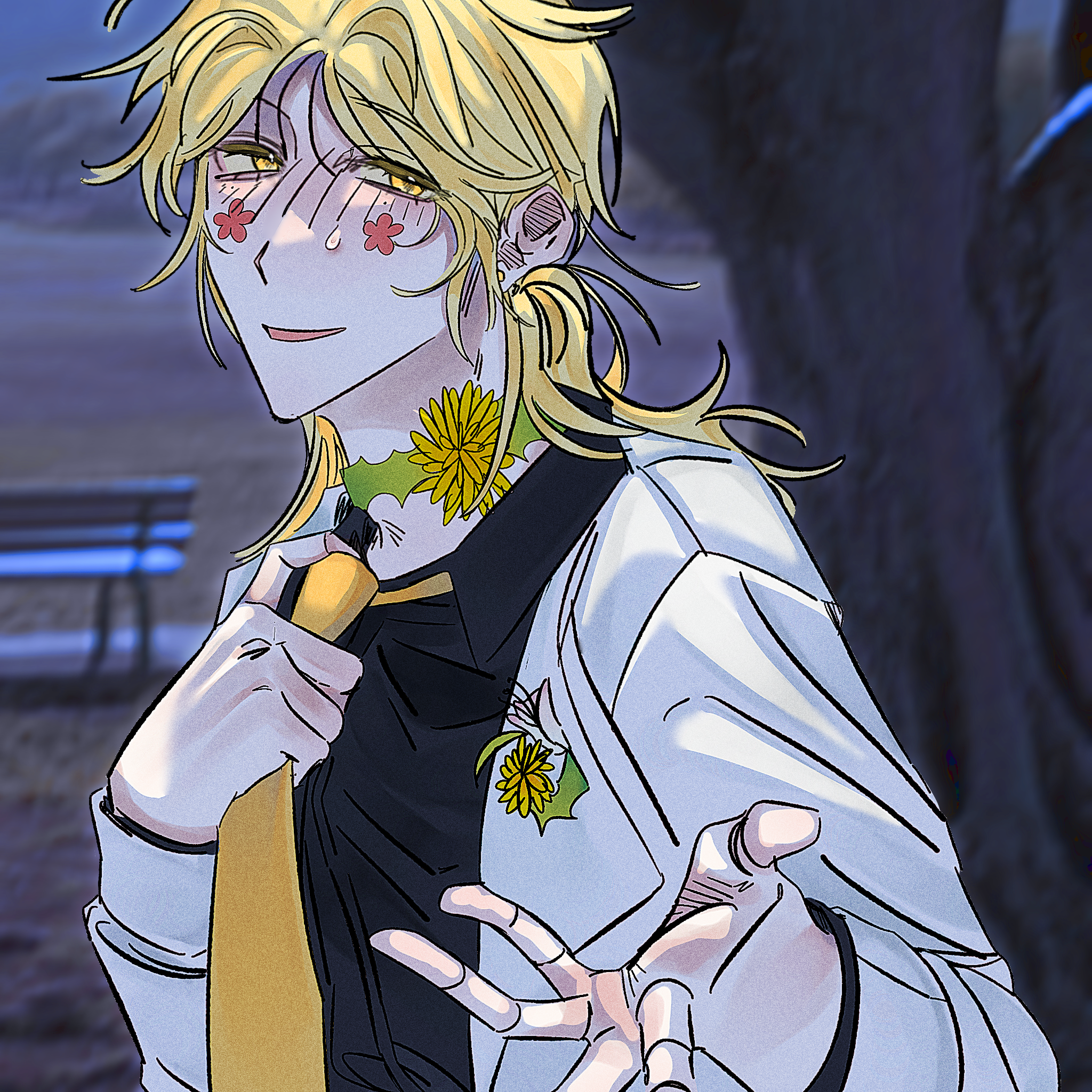 그는 항상 쾌활하고 장난기 많은 성격을 가지고 있으며 평소에는 능글맞은 태도를 가지고 있습니다.