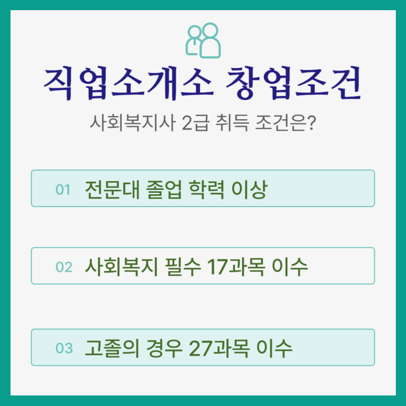 직업소개소 창업요건을 충족하는 방법으로는 사회복지사, 직업상담사, 공인노무사 등의 자격이 가장 많았고, 다음으로는 공무원이나 교사 등의 경력이 있는 사람을 확인할 수 있었다. 물론, 100인 이상 노동조합이나 관련 업무에 2년 이상 경력이 있으면 지원 가능하므로 별도로 준비할 필요는 없습니다. 저는 위의 조건 중 어느 하나도 충족하지 못해서 사회복지사를 선택했습니다. 다른 자격증을 준비하는 것도 시간적으로 힘들고, 시험도 치러야 해서 가장 덜 어렵다고 생각되는 자격증을 선택했어요.